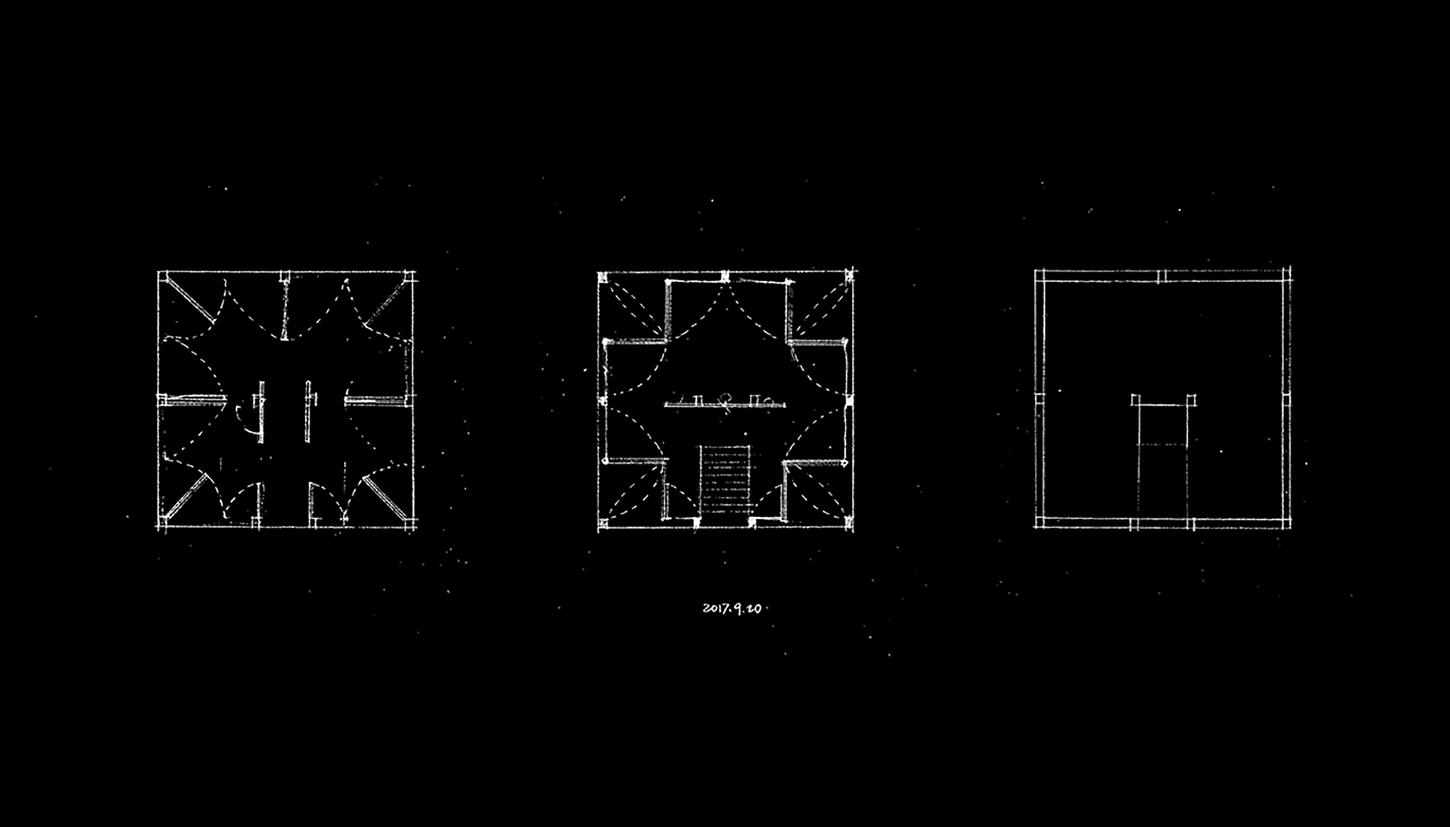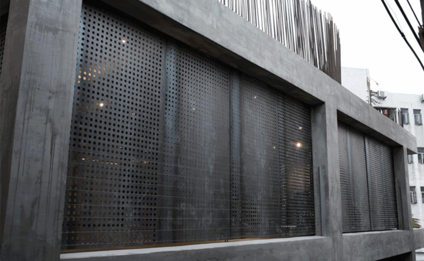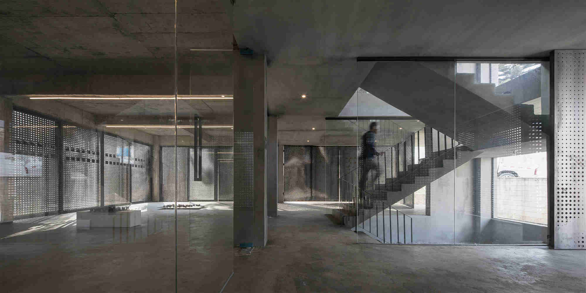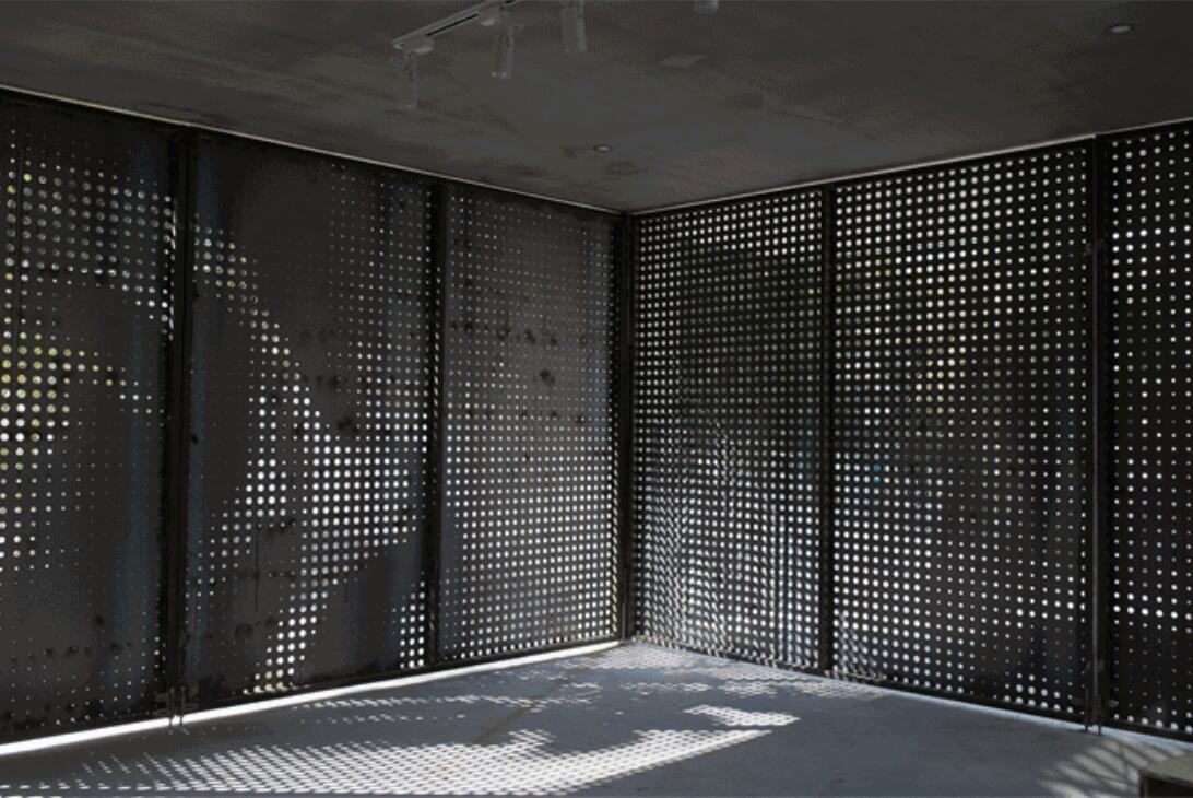 24 giant doors, the perforated doors, the translucent doors and the glass doors, are like a breathing layer, responding to the penetration of the surrounding environment in different postures: activating the ground at a specific time with the rhythm of light and shadow, revealing the subtle reflections and floodlights through the rotations of the doors, or following a person's behavior or trajectories by the translucent divisions.