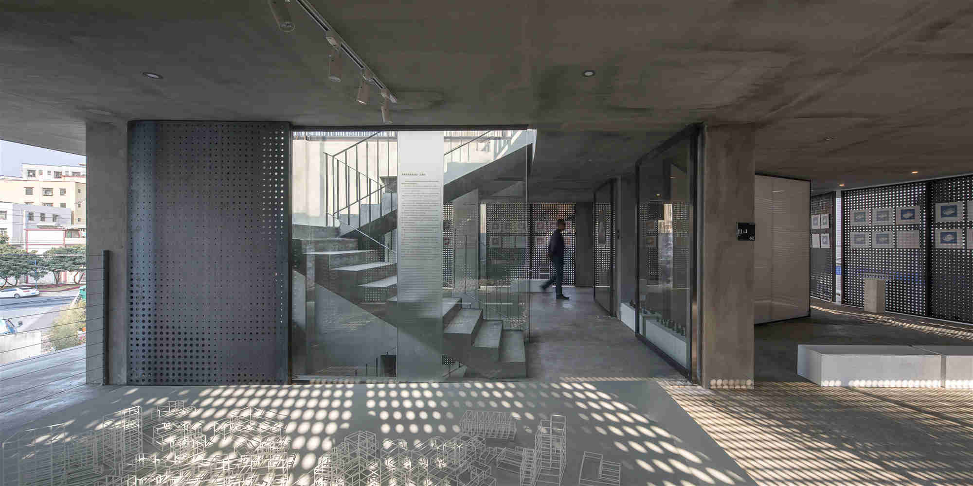 Architects from Benyuan Design and Research Center were invited to carry out researches on this old building and a series of renovation strategies are proposed: 1. Retain the original structure of the concrete frame, which is used as a physical sample to showcase the application of domino framework in Shangwei Village; 2. Add 24 giant metal doors to create a space with different opening combinations for the flexible use of art and education.