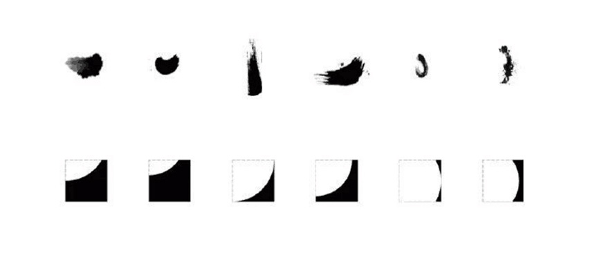 笔触不仅是书写运动的美学结果,也定义了二维书写的边缘和布局,即什么是内部(墨水部分),什么是外部(纸张部分)。设计师们将笔触作为“写”空间的工具,通过类似“空间笔触”的减法操作来建立博物馆空间,定义空间的“文字”形态。不同的笔触模块可以通过“加减”的思路与不同的功能联系起来,通过设计将笔触所包含的笔划移动(水平位移),落笔力度(垂直位移),以及落笔角度(方向)三个变量转化为球体与立方体的切割关系,最终完成体量雕切的操作。